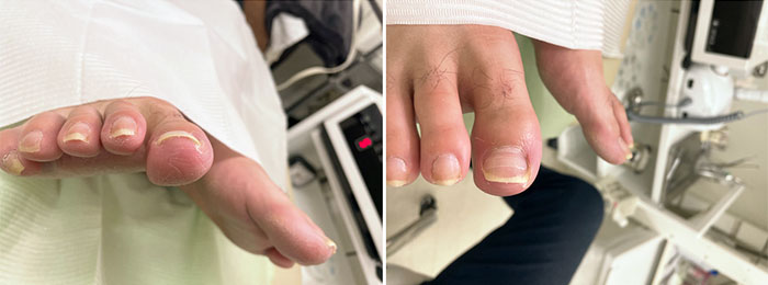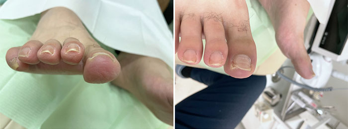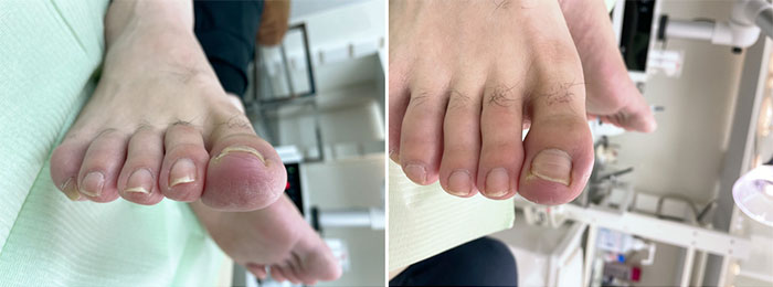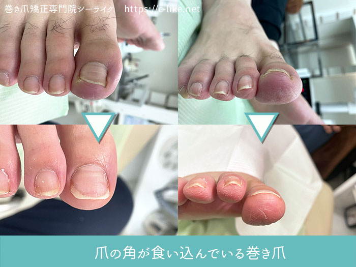 巻き爪と爪の切り方を失敗したのが原因で爪の端が刺さっています。