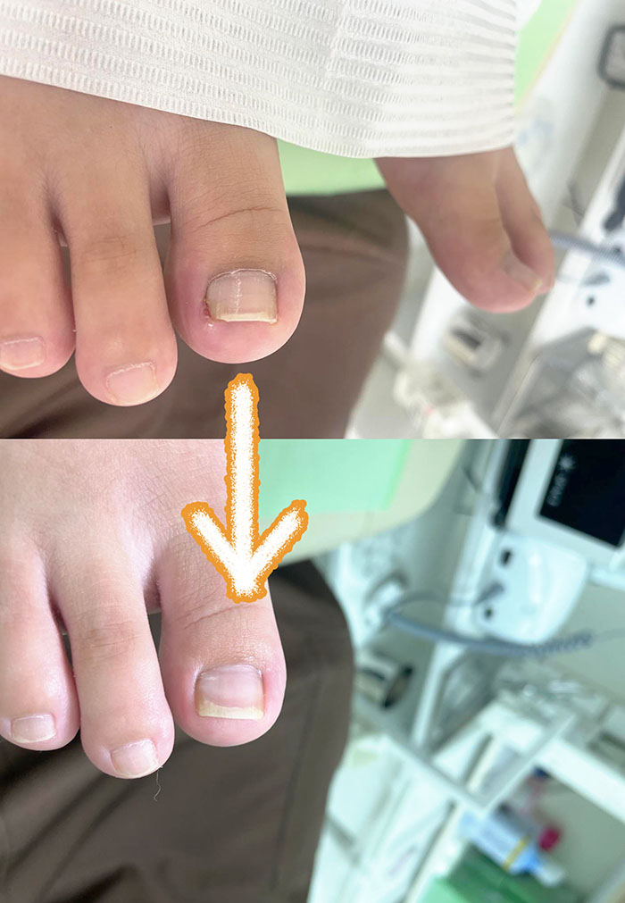 陥入爪(かんにゅうそう)のお客様の巻き爪です。