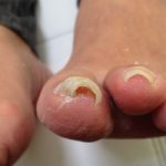 右足と左足の爪が違う巻き方をしていましたので、外的な要因が考えられる巻き爪ですね。